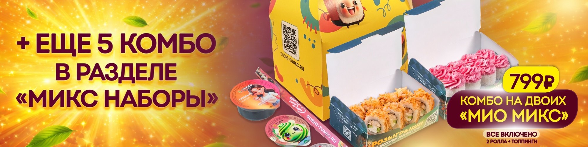 Филадельфия темпура, гриль чикен спайси, гриль кальмар-ролл, гриль миди-ролл, гриль кани маки.